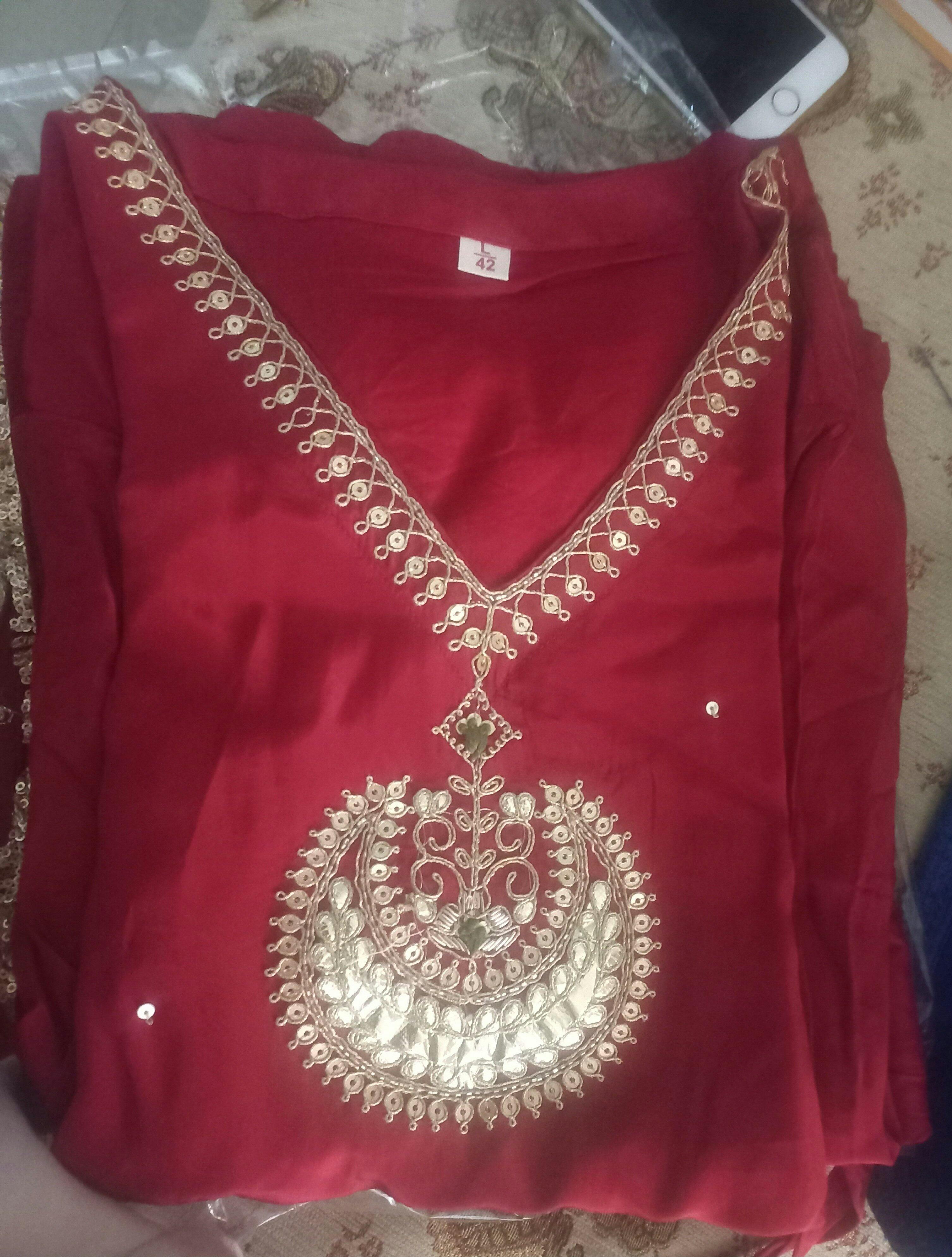 Step into timeless elegance with our “chand” suit set, a celebration of rich tradition and regal charm. Drenched in a deep maroon-red hue, this ensemble is crafted in luxurious fabric that drapes effortlessly with grace.